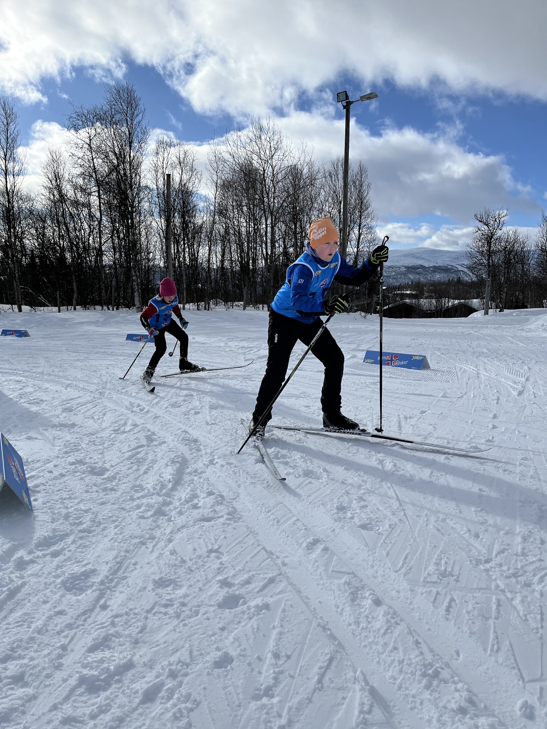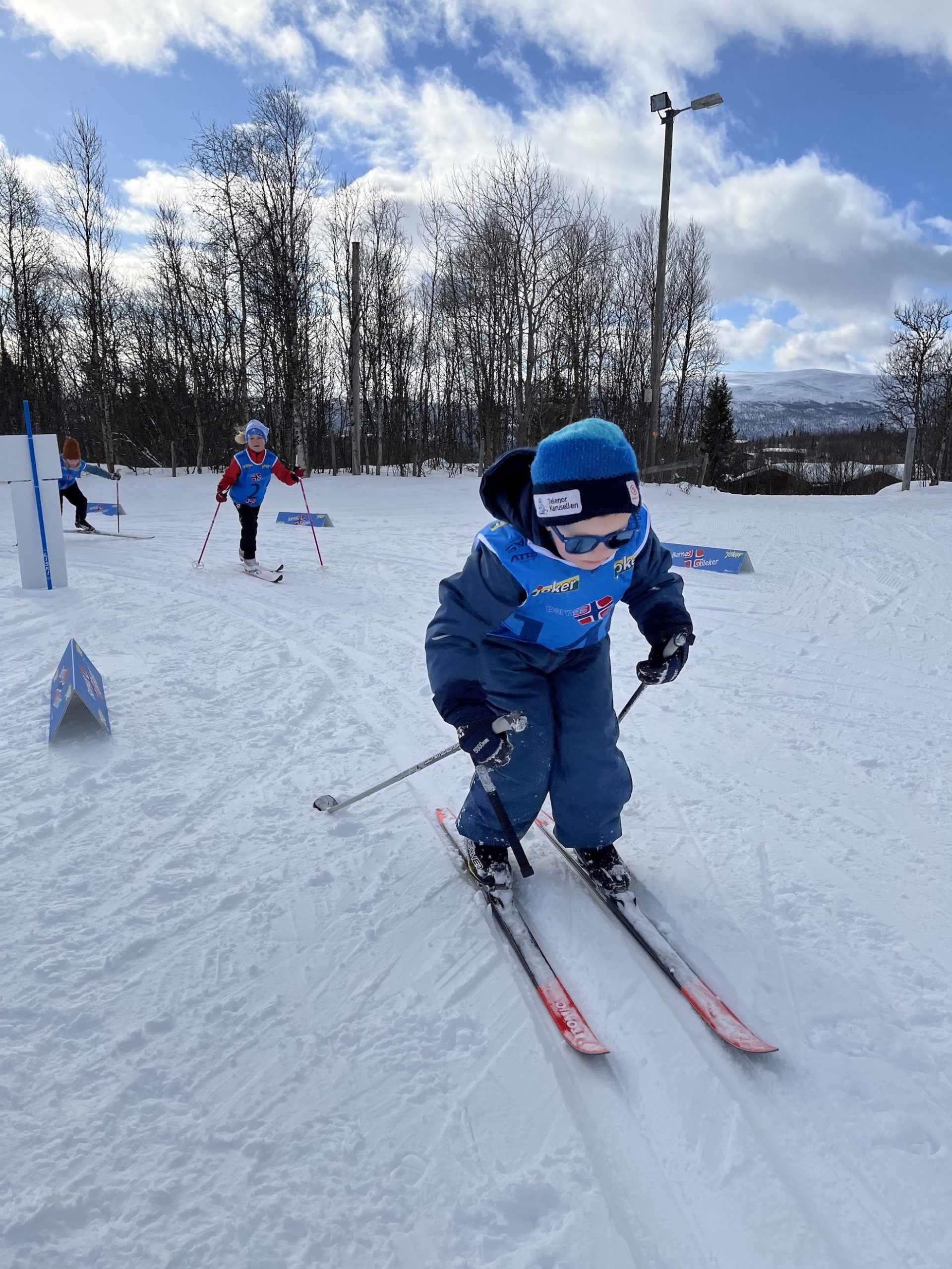 I god tid før start ankom deltagerne arenaen og testet løypene før startskuddet. Og da skjønte vi at denne gjengen ville takle løypa helt fint. Kl. 12.00 satte kidsa med grønne startnumre i gang. De skulle gjennom en 300 meter lang løype der høyresvinger var i fokus. For en innsats av både deltagere og ikke minst støtteapparat som løp etter barna i sporet. En etter en suste de i mål, og mottok velfortjente premier fra Joker Heggenes. Da alle de grønnkledde hadde krysset målstreken ble alle barna med gule startnumre sendt ut på sin runde. En 600 meter lang runde med høy fart, flott føre og masse moro! Her så man at teknikken satt! Diagonalgang, skøyting, staking og sladding er bare noen av teknikkene de gulkledde briljerte med. Det satte standaren for den blå gruppen som skulle gå den lengste løypa. De suste ut av startblokkene og for en fart vi ble vitne til. De blå draktene suste ned den første bakken i full fart og nø t dagen som bytte på påskestemning! Noen fall med myk og fin snø var ingen problemer for dagens oppmøtte!