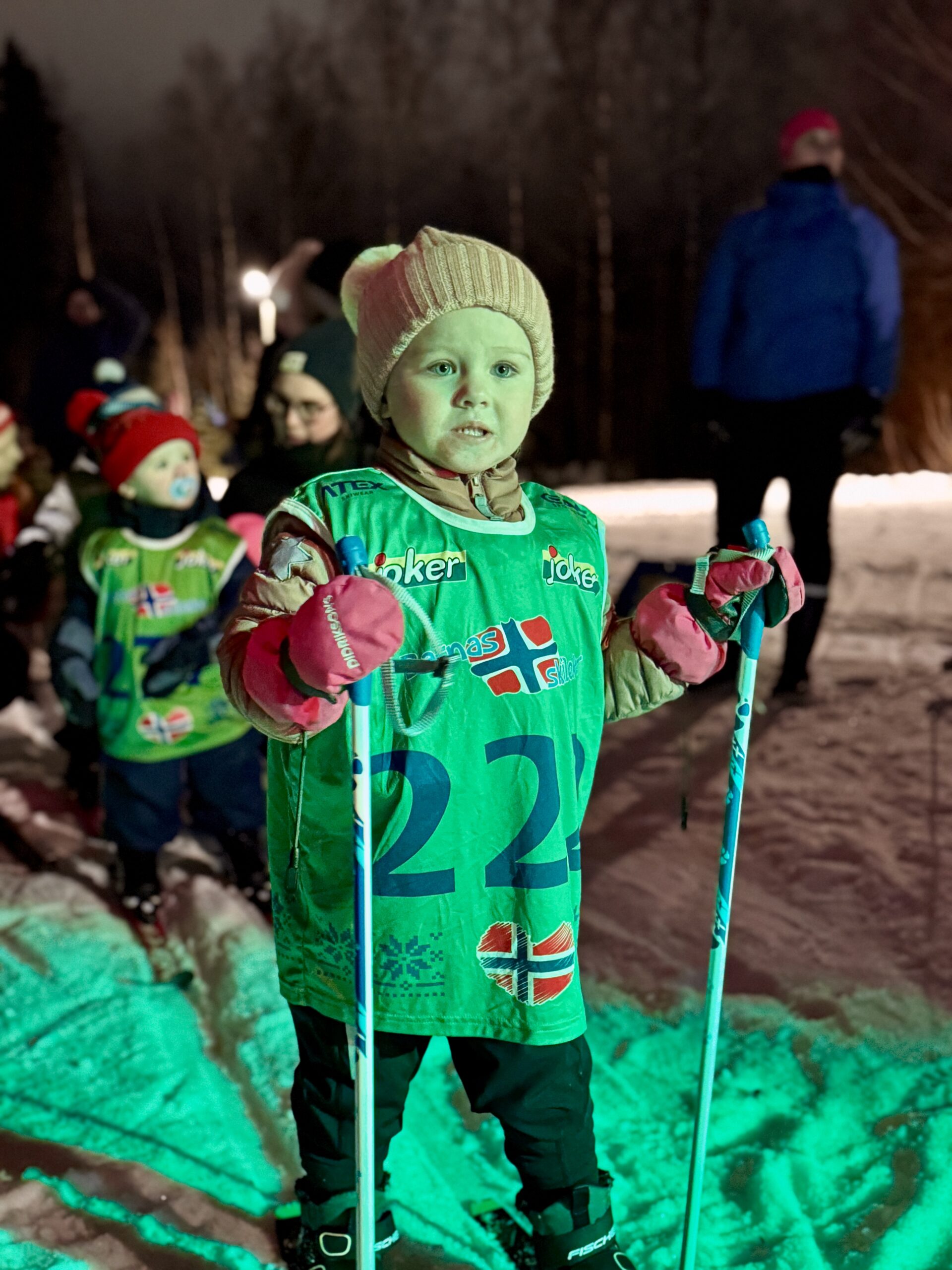 Arenaen sto klar på ettermiddagen, og det tok ikke lang tid før barn, foreldre og frivillige fylte området med liv og forventning. Runde etter runde ble gått i grønne, blå og gule løyper, tilpasset både de som ville teste fart og de som ville kjenne på mestring i sitt eget tempo. At løypene holdt så høy kvalitet med så lite snø, vitner om solid innsats og ekte dugnadsånd.